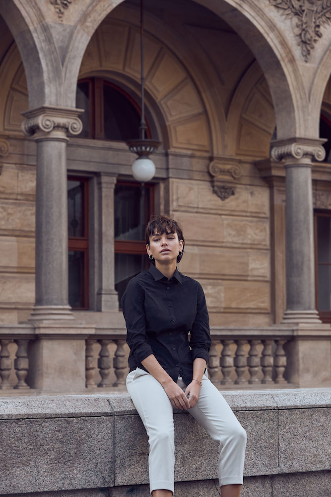Skjortan har ton-i-ton knappar och tejpade sömmar samt är Easy Care behandlad.
